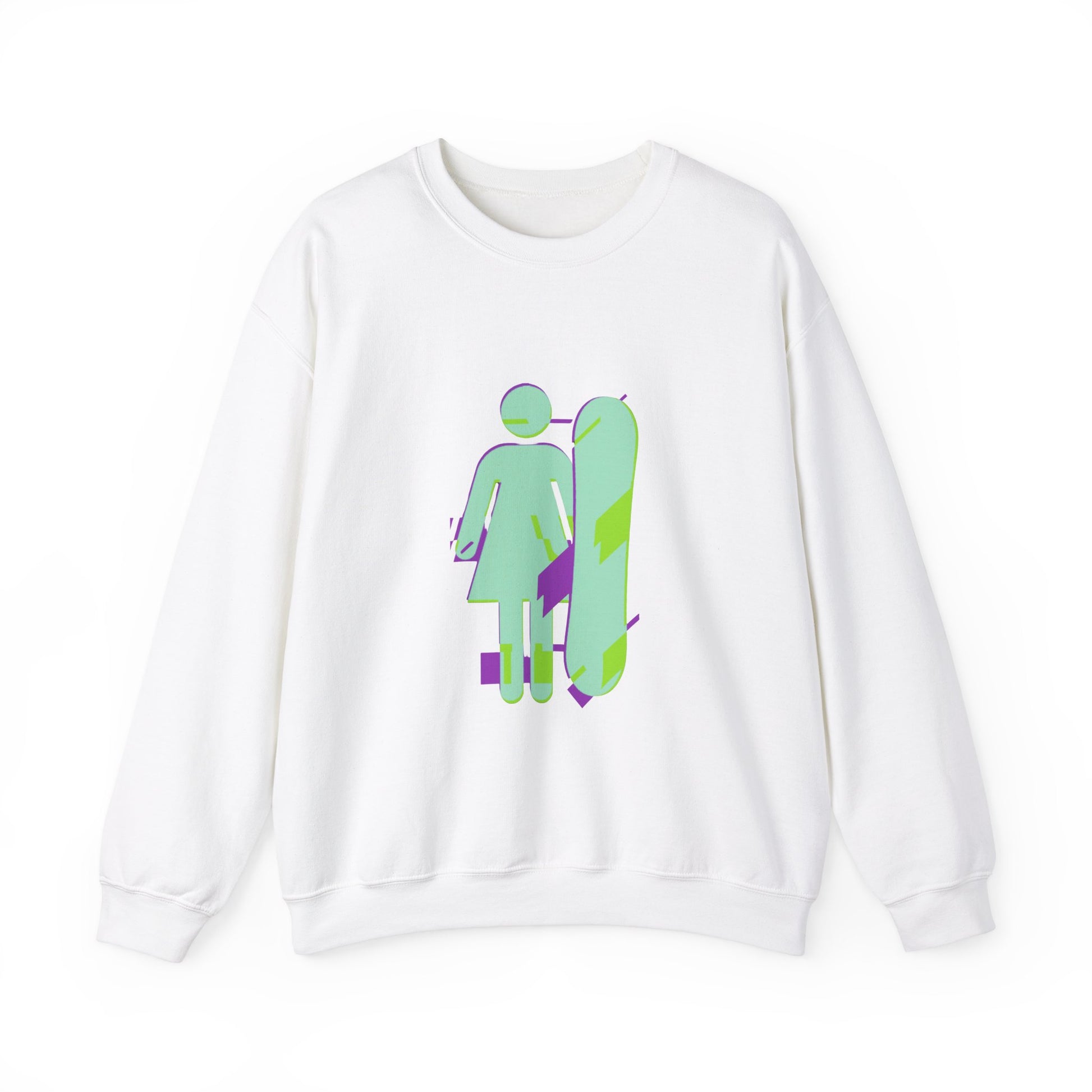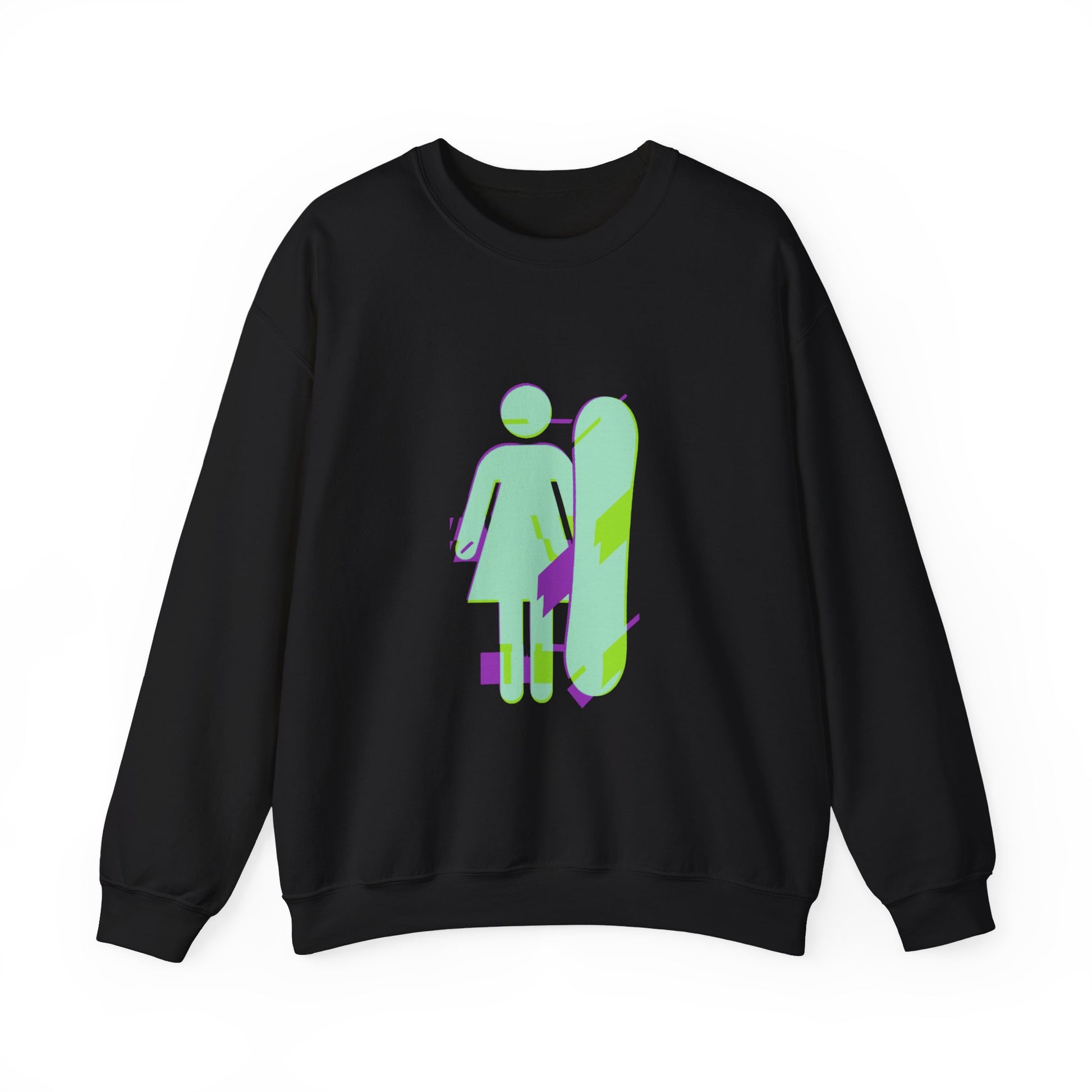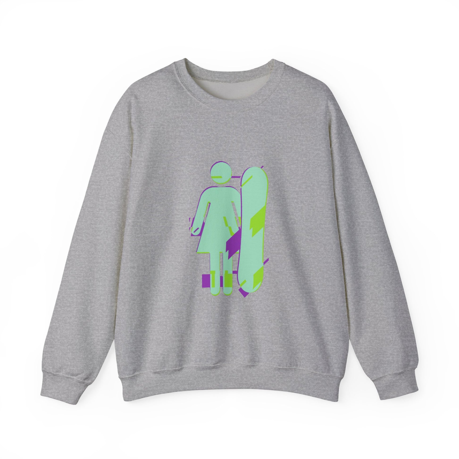 Female Snowboarder Crew Neck Sweatshirt Hoodie - Mint Green and Purple