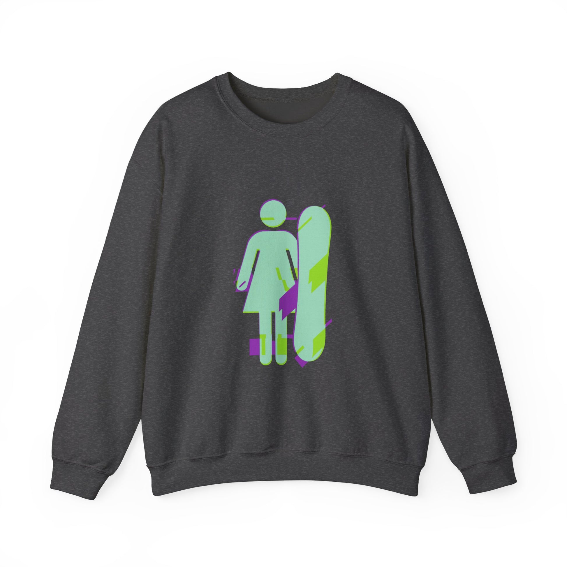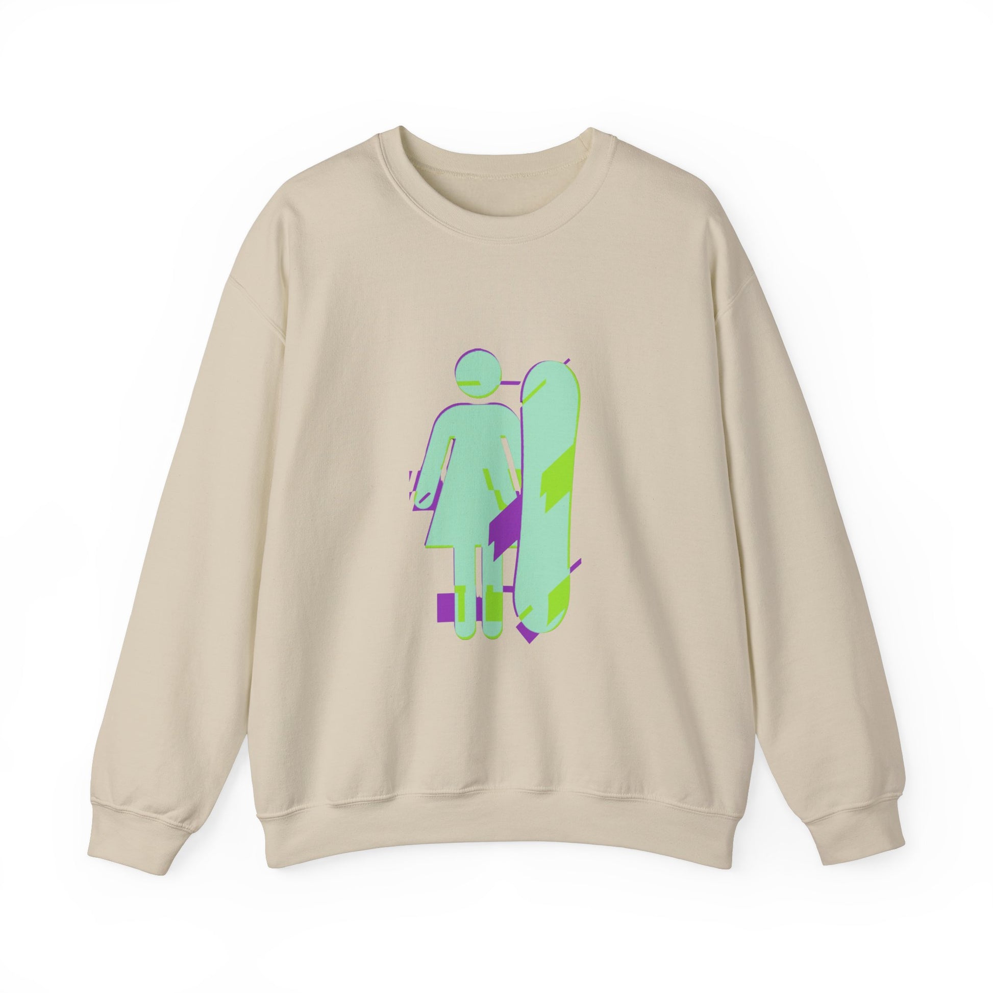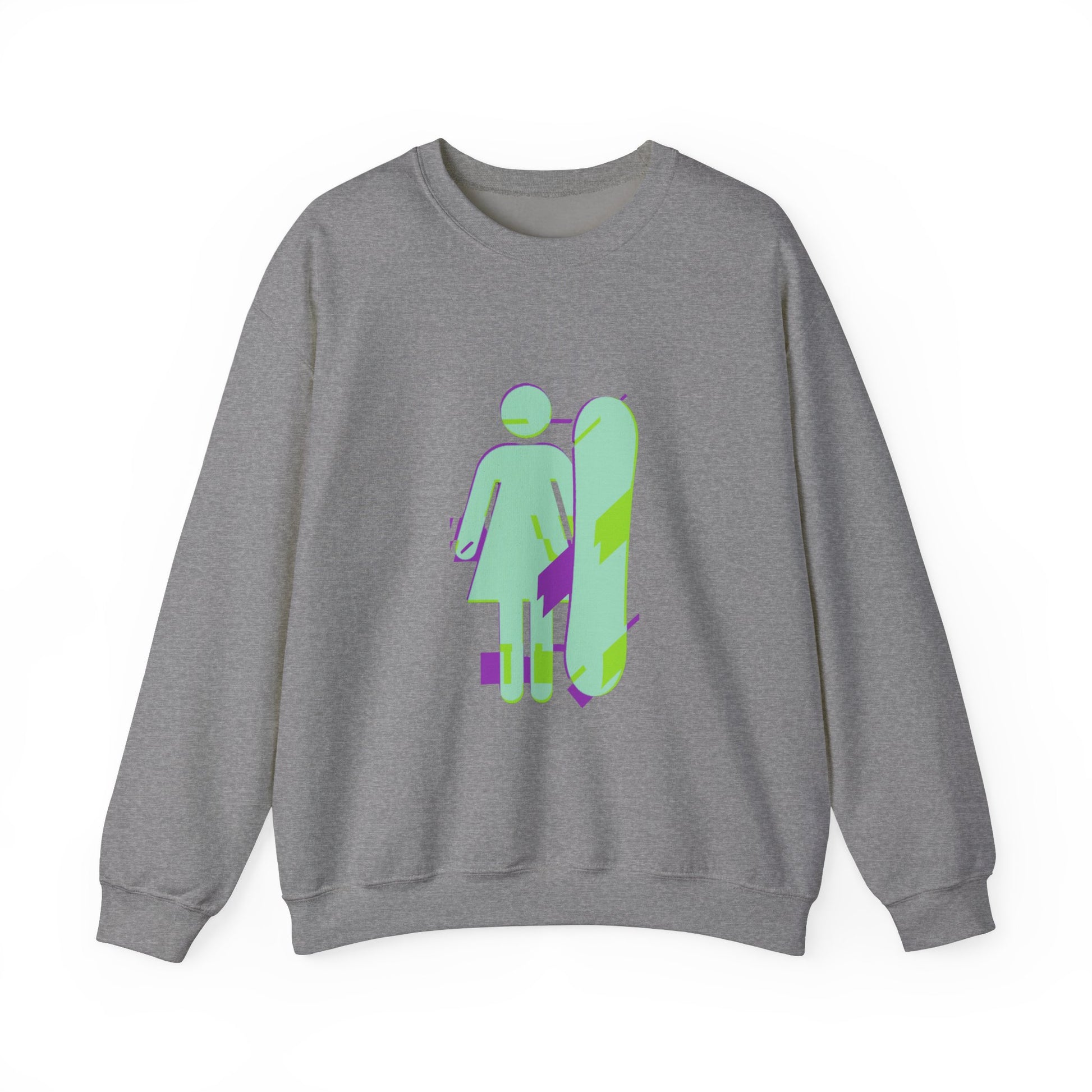 Female Snowboarder Crew Neck Sweatshirt Hoodie - Mint Green and Purple