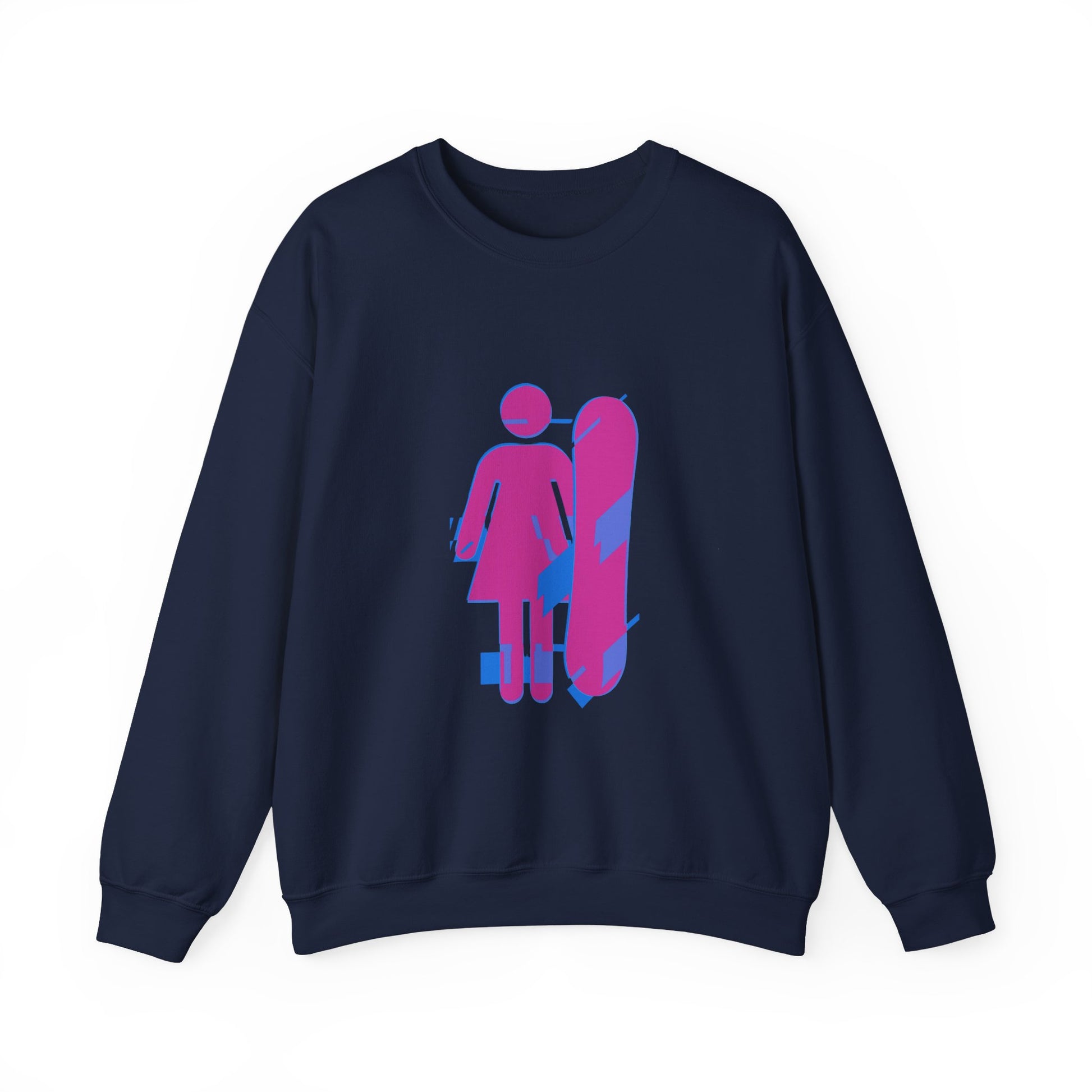 Female Snowboarder Crew Neck Sweatshirt Hoodie - Pink and Blue