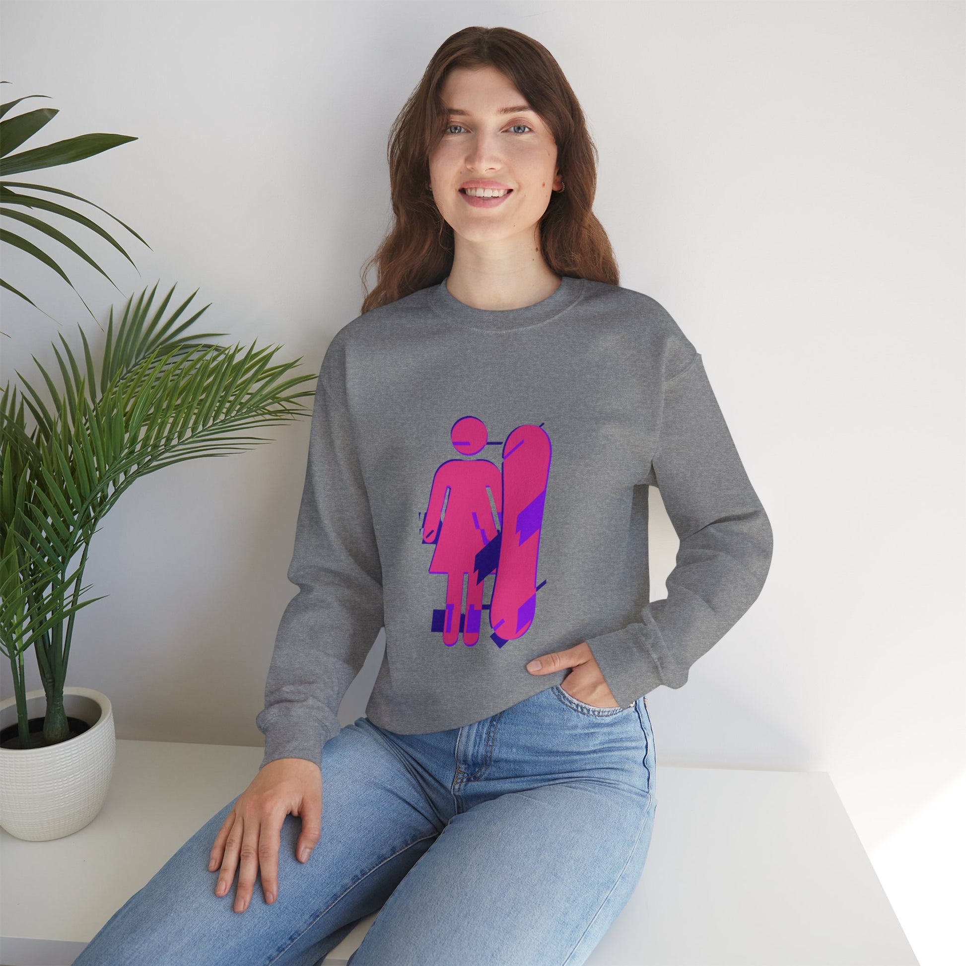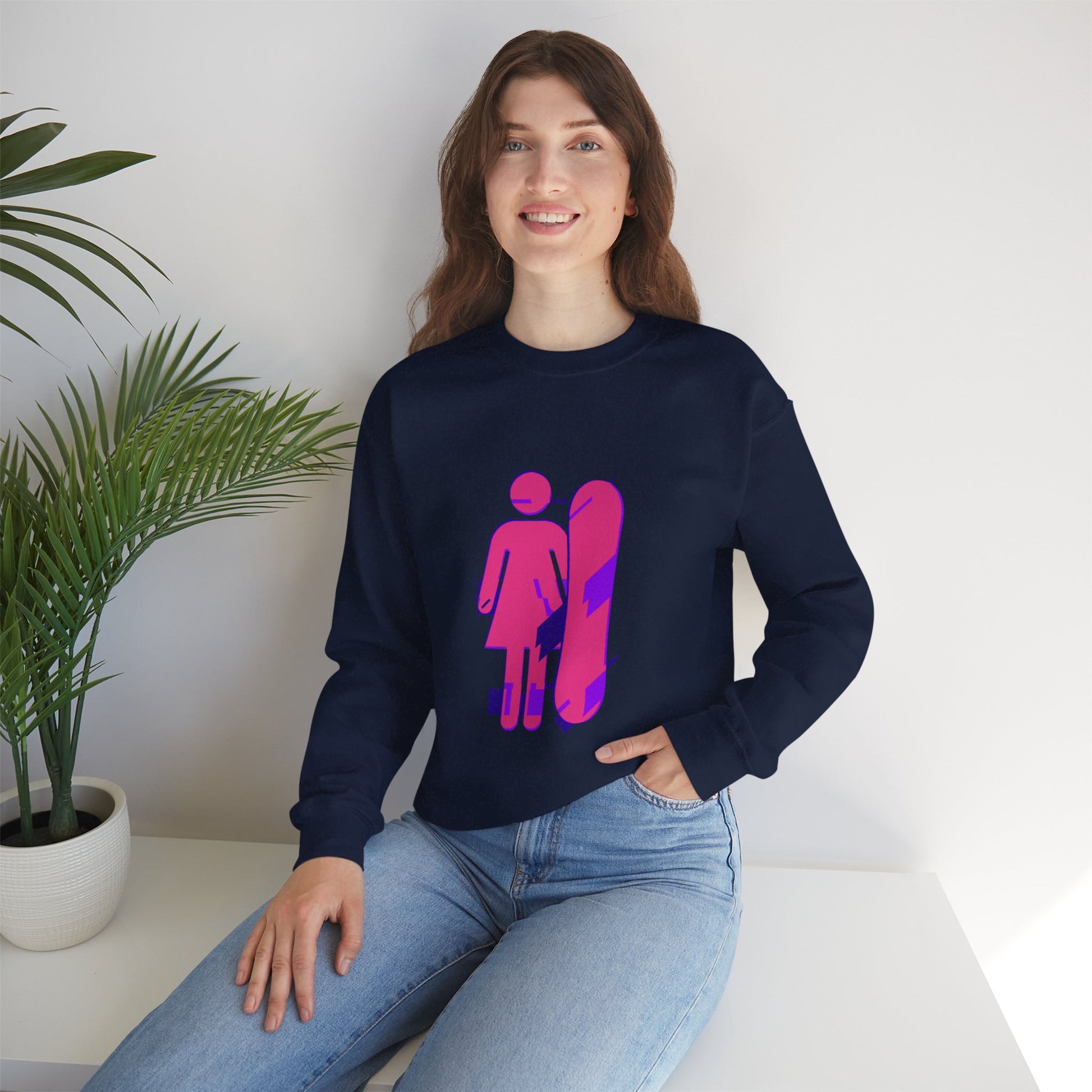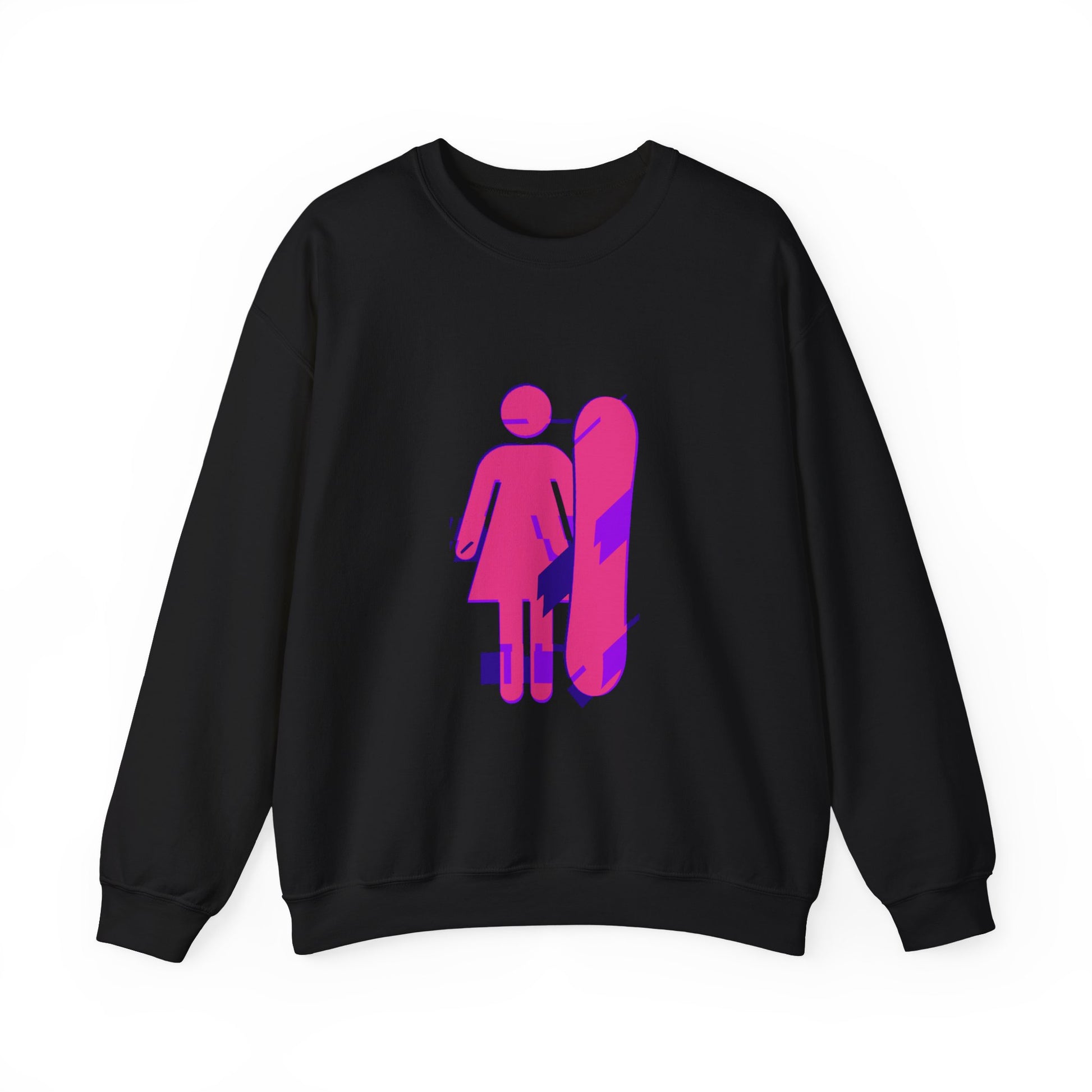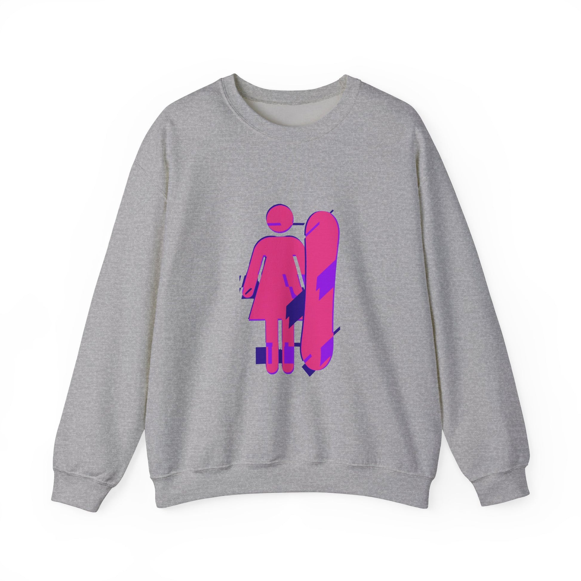 Female Snowboarder Crew Neck Sweatshirt Hoodie - Pink and Purple