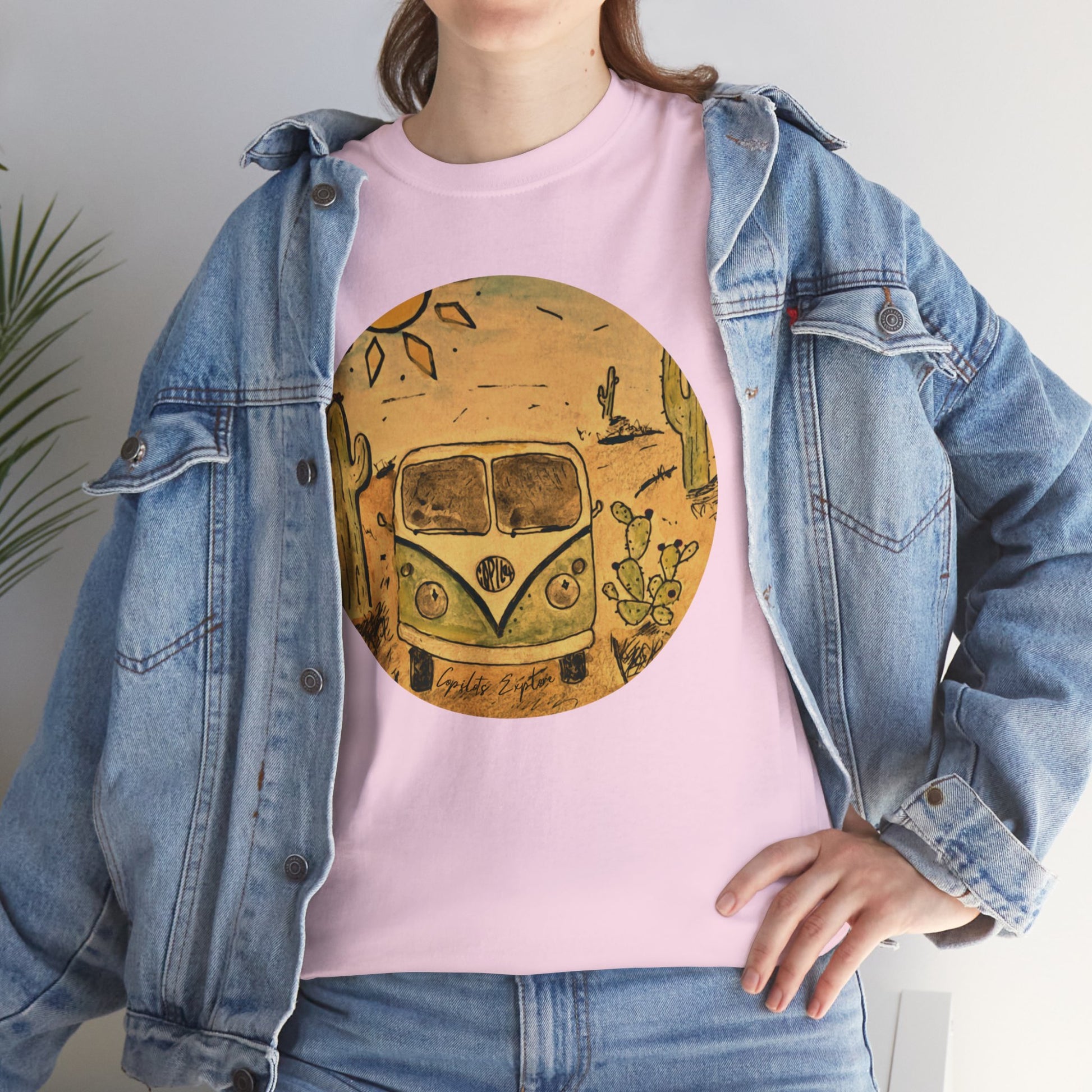 Celebrate your love for Volkswagen with this 100% cotton t-shirt featuring a custom VW Bus drawing in a charming sketchbook style, designed by Copilots Explore. Perfect for VW enthusiasts, this unique design captures the essence of the iconic VW Bus set against a stunning southwest desert backdrop. Made from premium, soft cotton, this t-shirt offers both comfort and durability, making it ideal for everyday wear or your next road trip adventure. The detailed sketchbook-style artwork is a true conversation starter, showcasing your passion for classic VW culture and the open road.